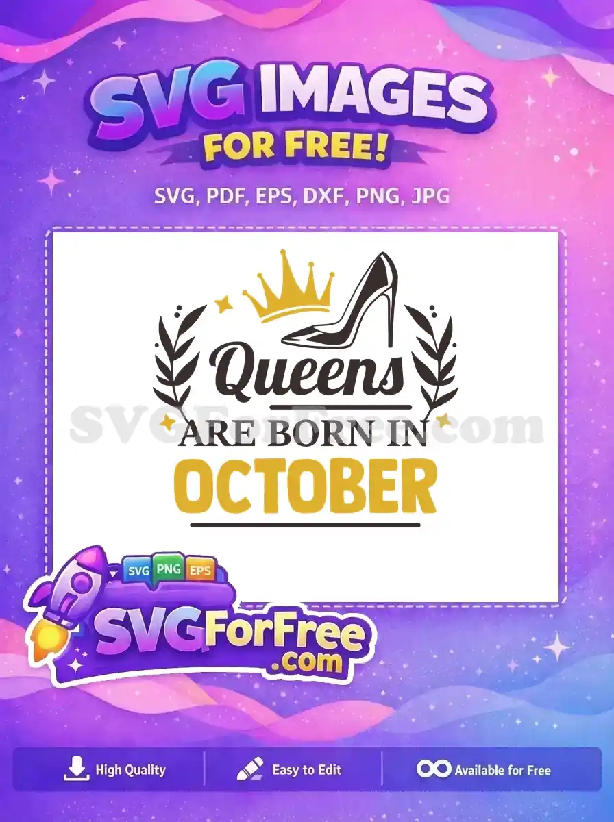 Celebrate October birthdays royally with this stunning free Queen SVG design, perfect for all your craft projects.