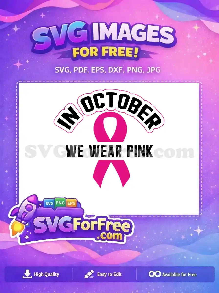 Free In October We Wear Pink Free Pink Ribbon Cancer Awareness Free SVG – Instant Download