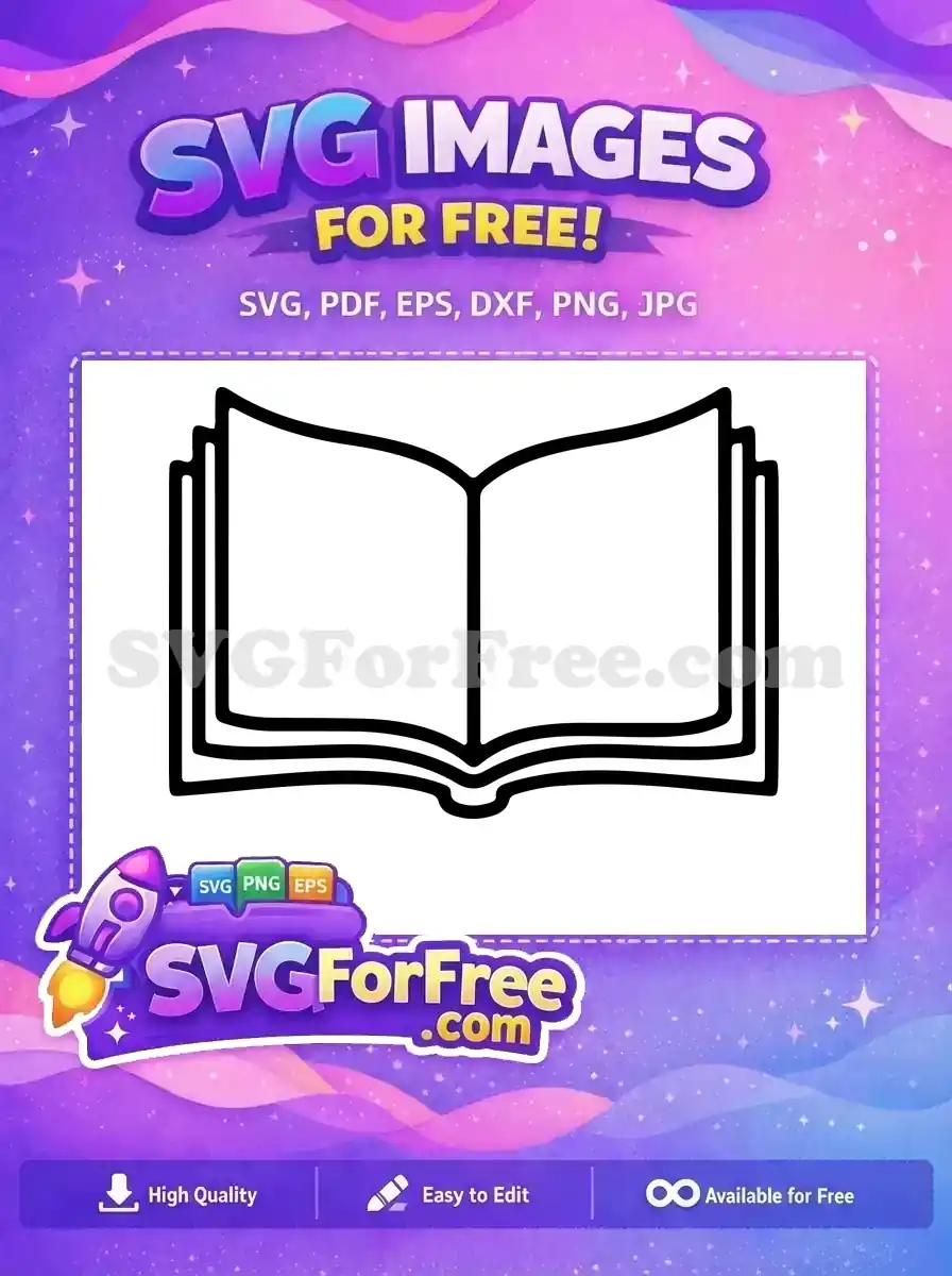 Unlock free knowledge with this versatile open book outline SVG. A perfect free design for education, reading, and learning projects!