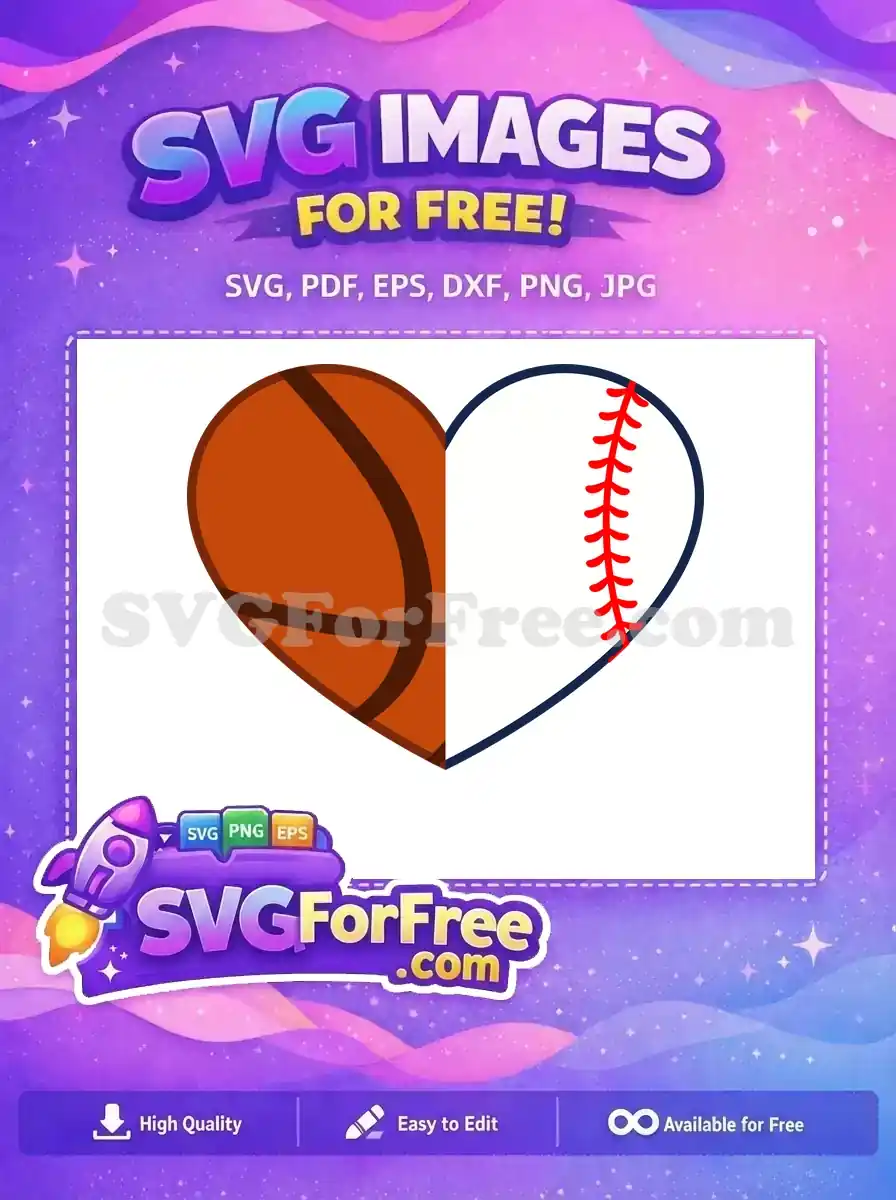 Heart split between basketball and baseball textures, a free vector for court and diamond fans.