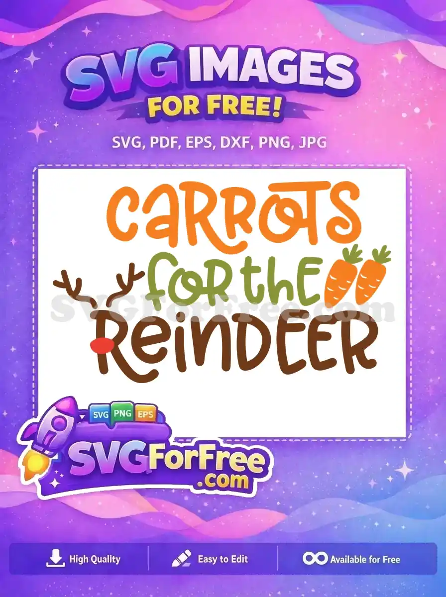 Delightful free Christmas design, ‘Carrots for the Reindeer’ SVG, perfect for festive crafts. Get this charming holiday digital download now for your creative projects!