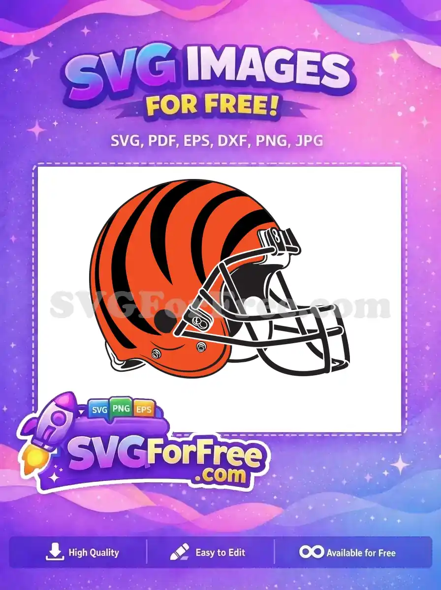 Cincinnati Bengals helmet featuring the distinctive orange and black tiger stripe design. Free vector graphic.