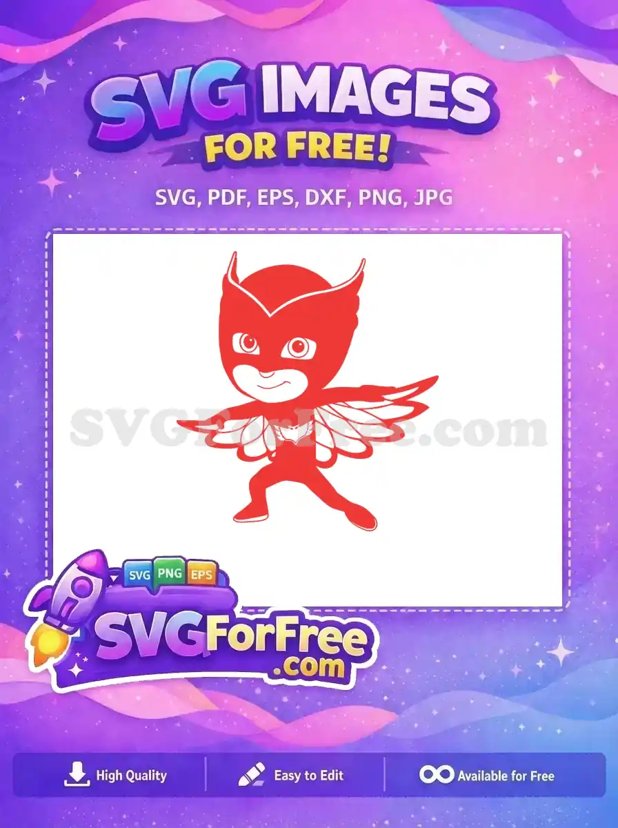Free Owlette PJ Masks Free Cartoon Red Silhouette Free SVG – Instant Download