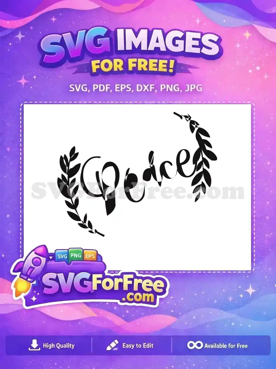 Word ‘Peace’ script with olive branches, available as a free vector design.