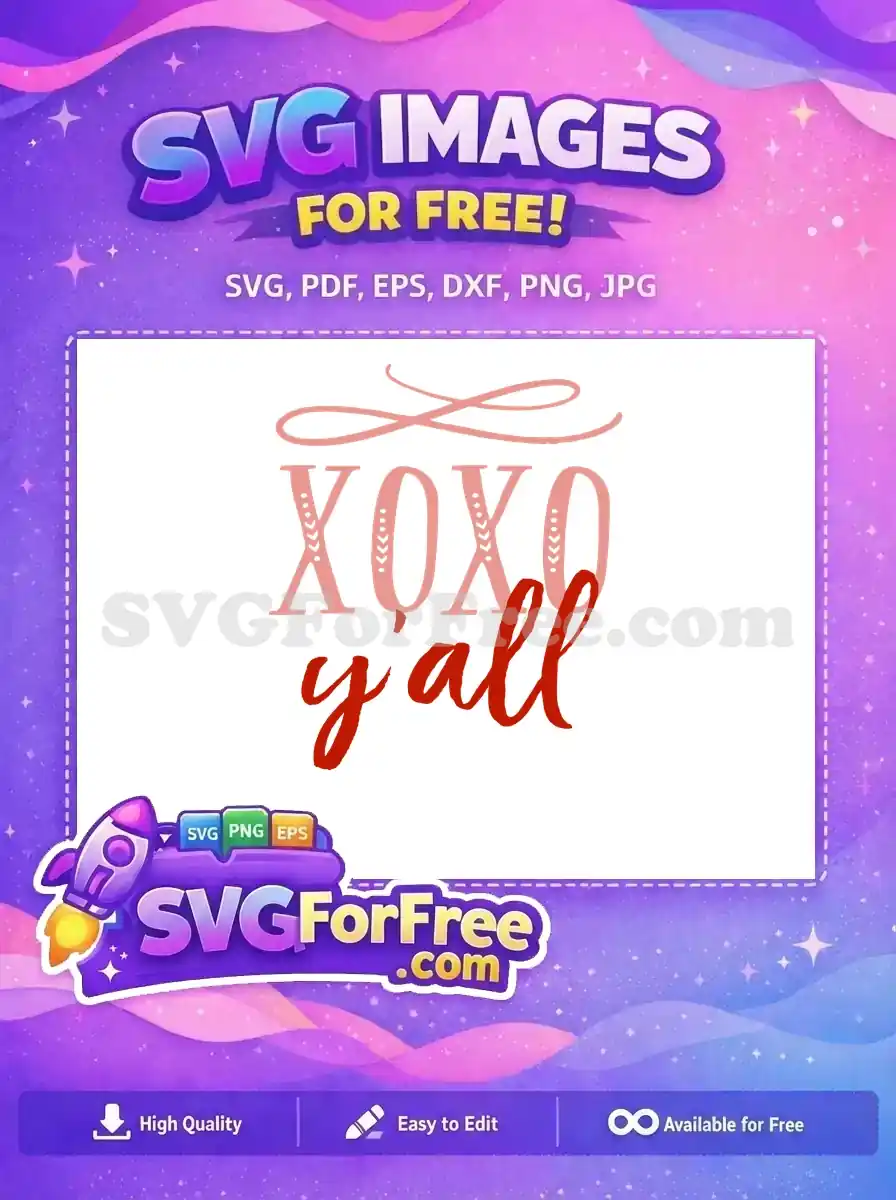A trendy ‘XOXO y’all’ message in a casual, handwritten script font. A free design for southern charm.