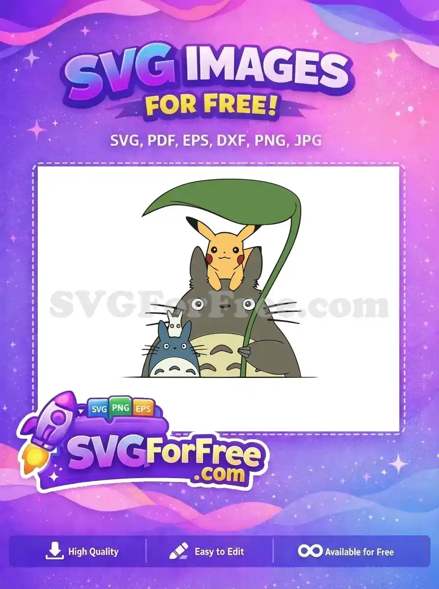 Free Pikachu on Totoro Free Holding Leaf Totoro Free SVG – Instant Download
