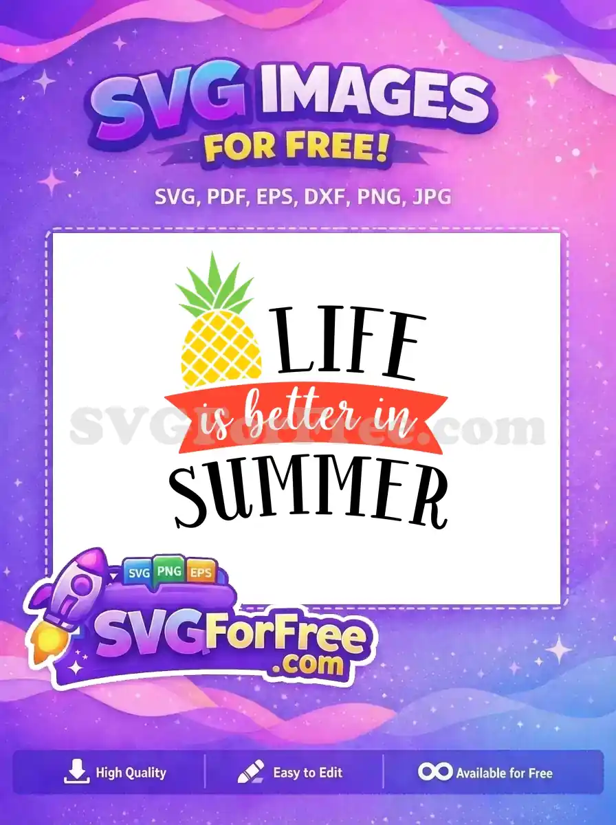 Free Pineapple Design Free Summer Quote Life Free SVG – Instant Download