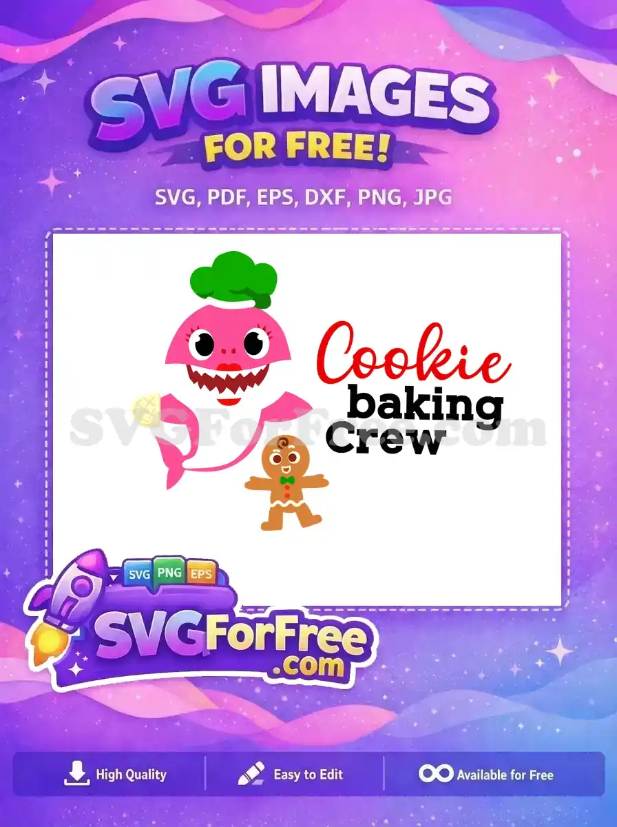 Free Pink Baby Shark Chef Free Gingerbread Man Cookie Baking Party Free SVG – Instant Download