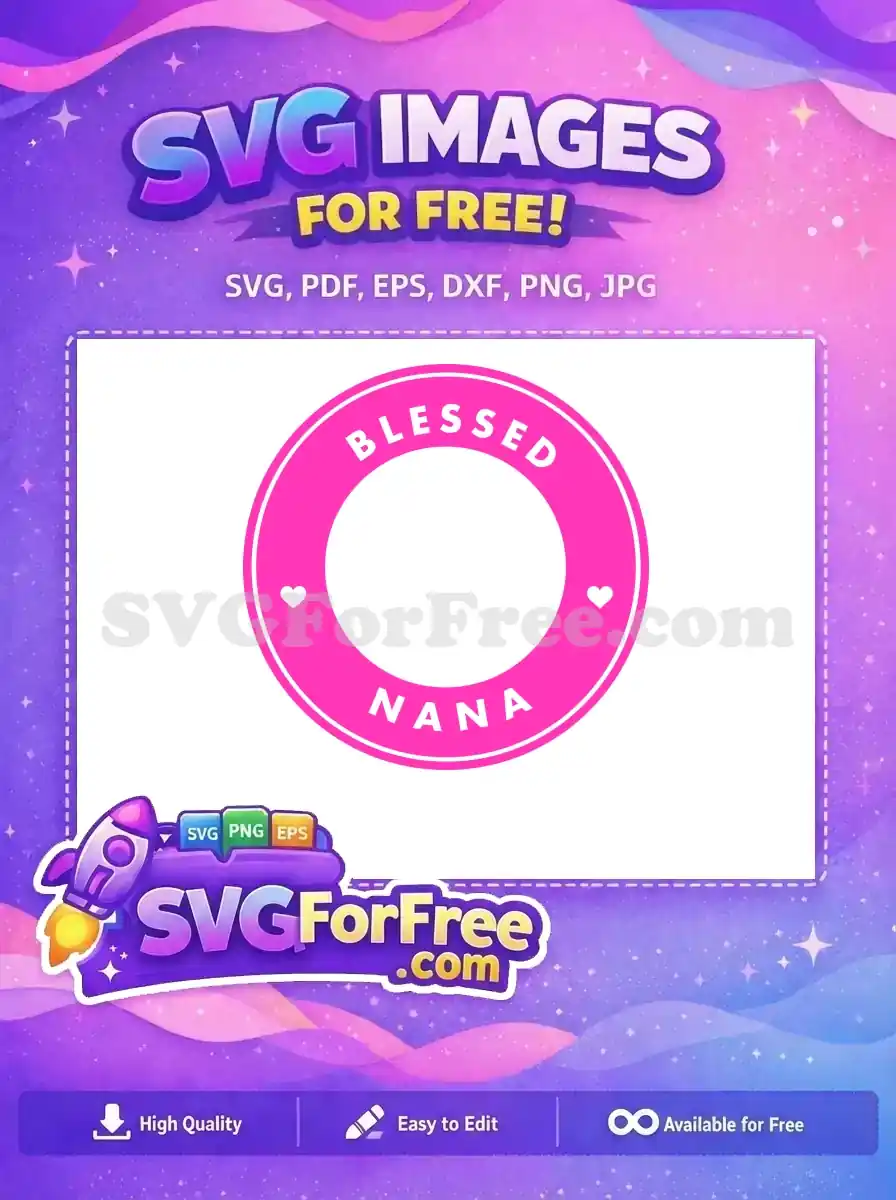 Pink circular badge reading ‘Blessed Nana’, available as a free cute vector for grandmothers.