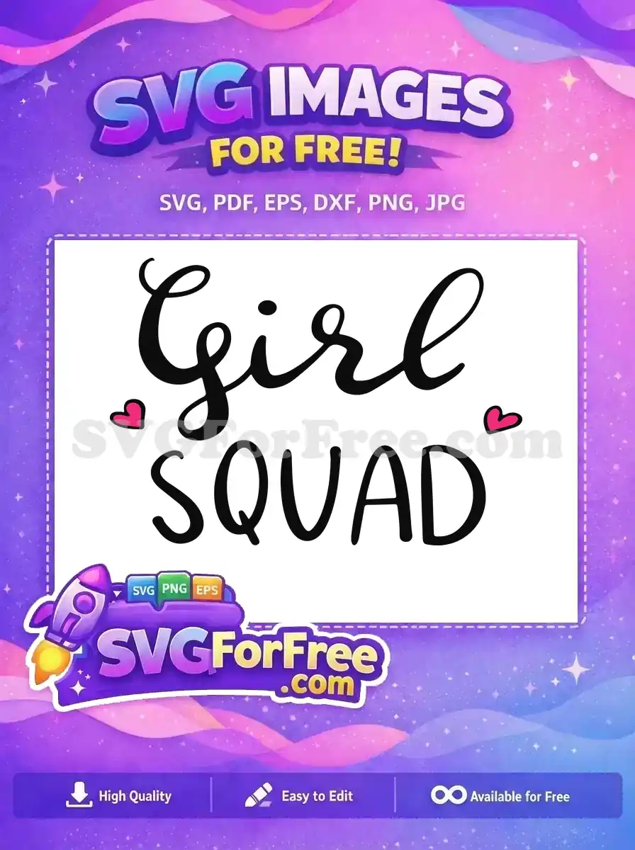 A trendy, complimentary vector of “Girl SQUAD” in a modern mix of script and sans-serif fonts with a heart.