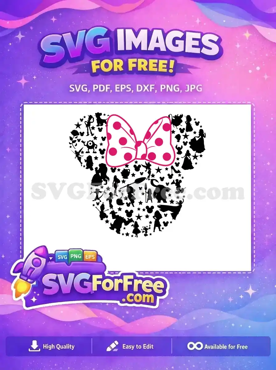 Free Pink Polka Dot Bow Free Disney Characters Minnie Mouse Head Free SVG – Instant Download
