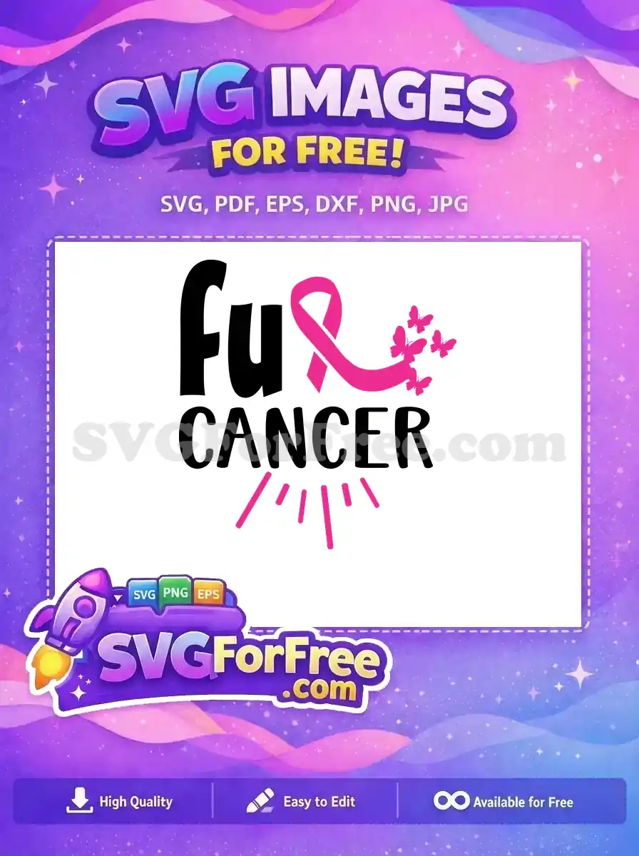 Empower your message with this free design! A powerful ‘Fu Cancer’ SVG, featuring a pink ribbon and butterflies, perfect for awareness projects. Download this free vector now!