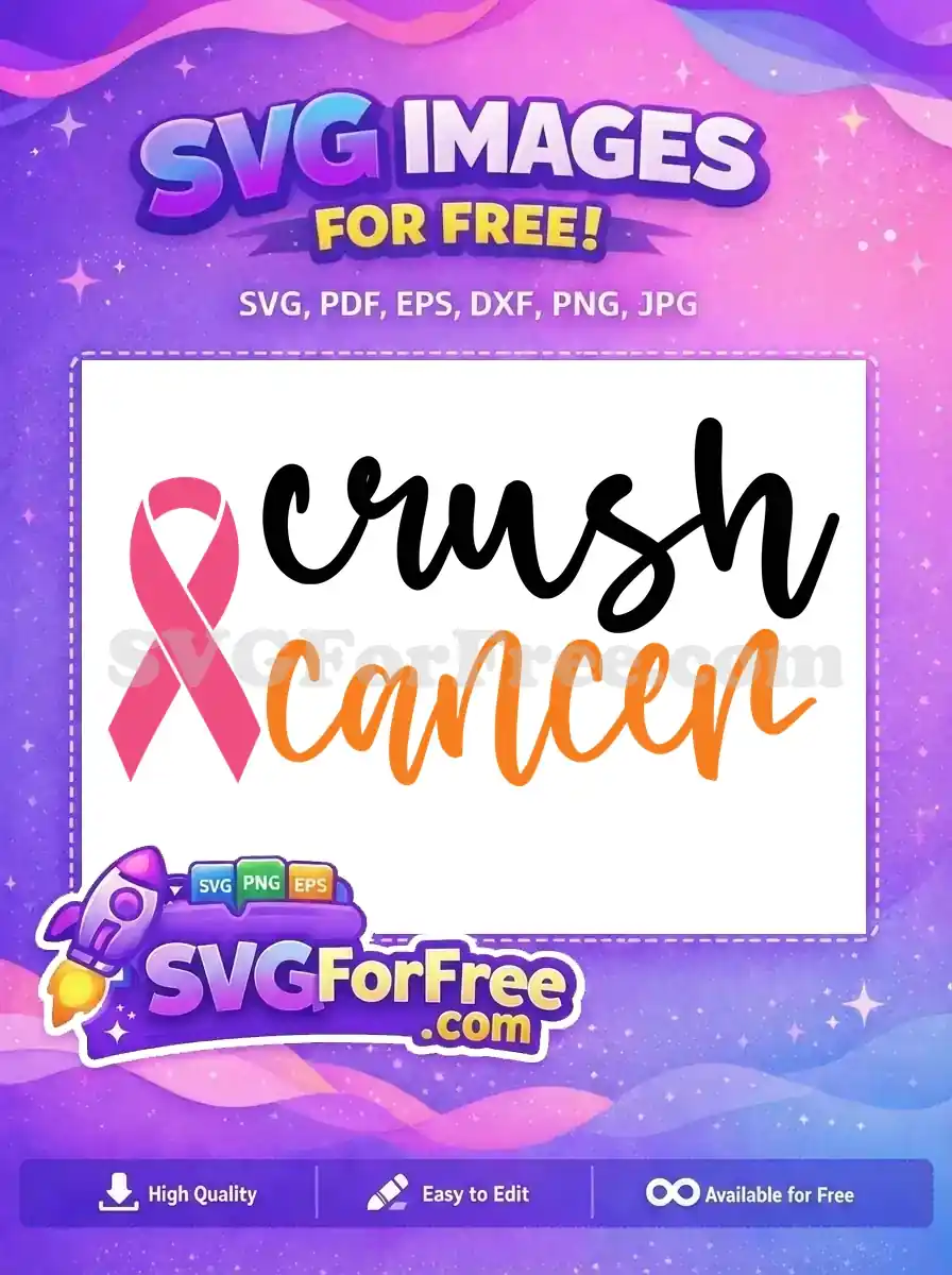 Empower with this stunning free ‘crush cancer’ SVG design, featuring a powerful pink ribbon for awareness.