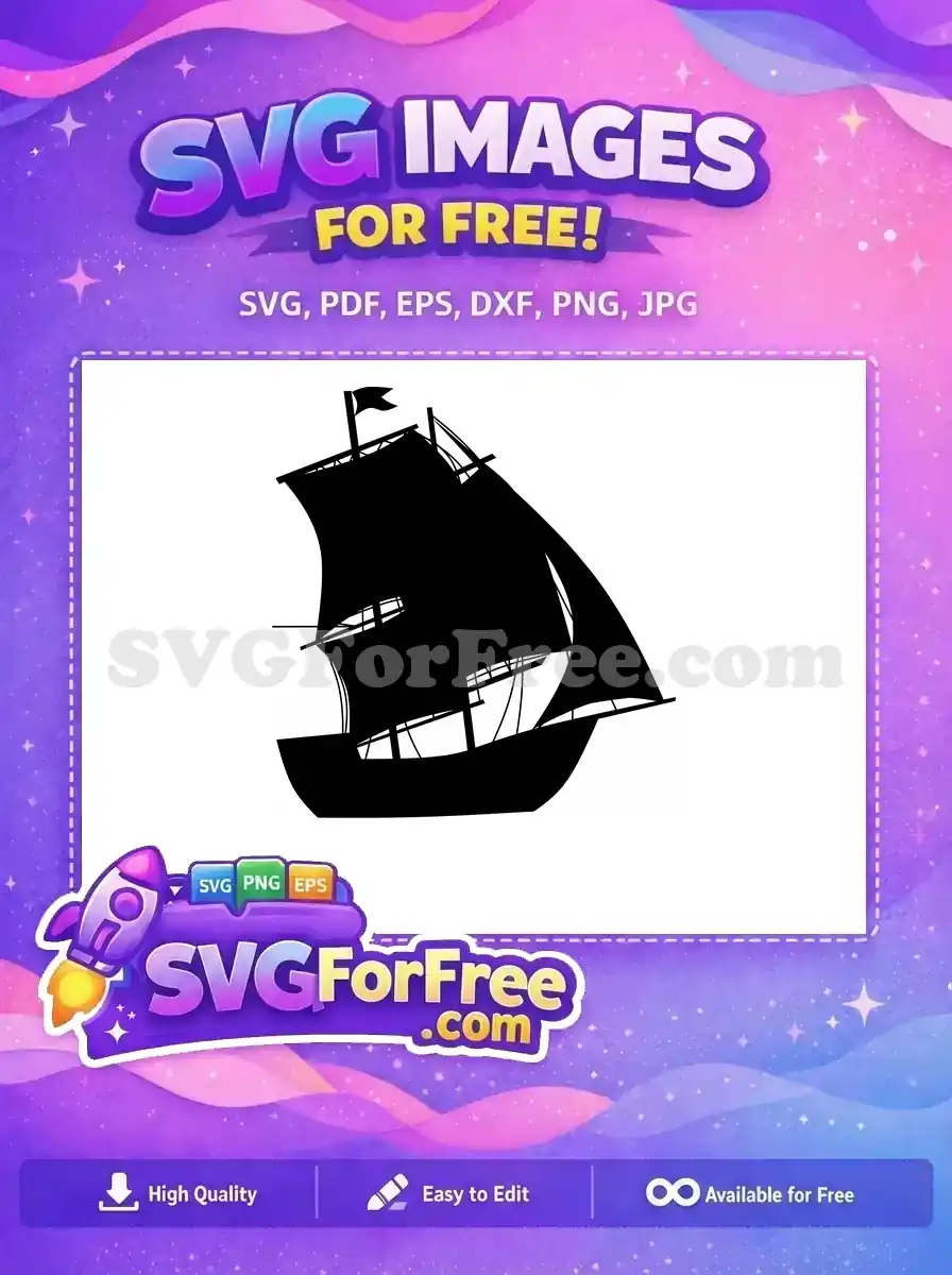 Discover this majestic free sailing ship design, perfect for maritime themes. A versatile free vector graphic for all your creative projects.