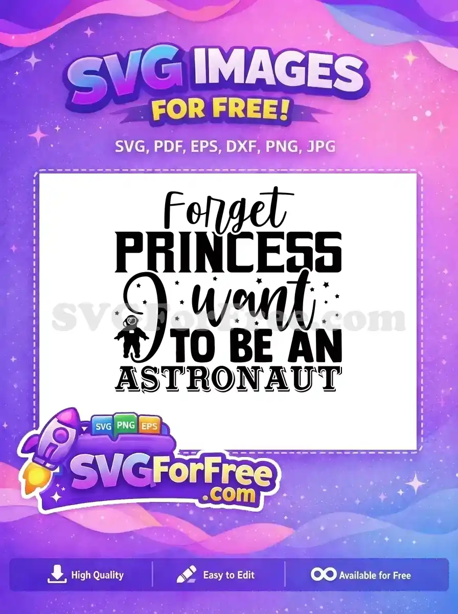 Unleash dreams with this free ‘Forget Princess, I want to be an Astronaut’ SVG design, perfect for inspiring young minds. A captivating, empowering free design for crafts and apparel!