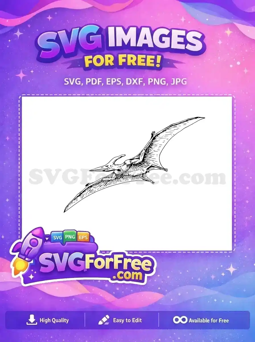 Sketch-style flying dinosaur illustration, a unique free graphic for artistic projects.