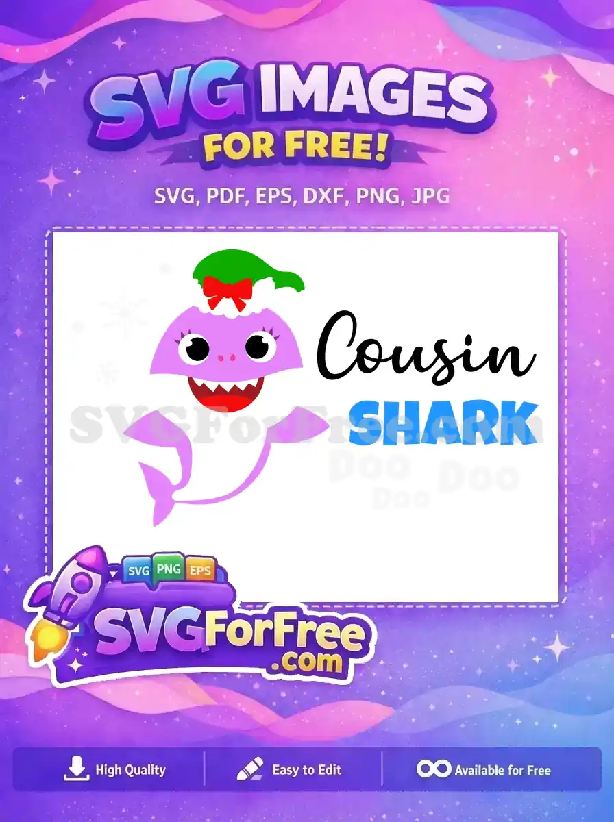 Get this enchanting free Cousin Shark Christmas SVG design, perfect for festive crafting. A delightful cartoon character awaits!