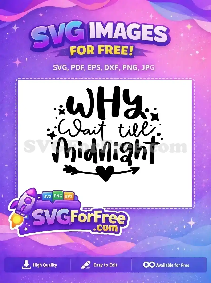 A free, whimsical design of ‘Why wait ’til midnight?’ with bat wings on the ‘W’ and stars.