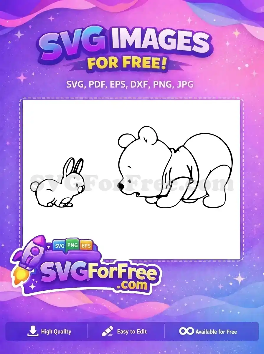Free Rabbit and Pooh Friend Free Black Outline Winnie The Pooh Free SVG – Instant Download