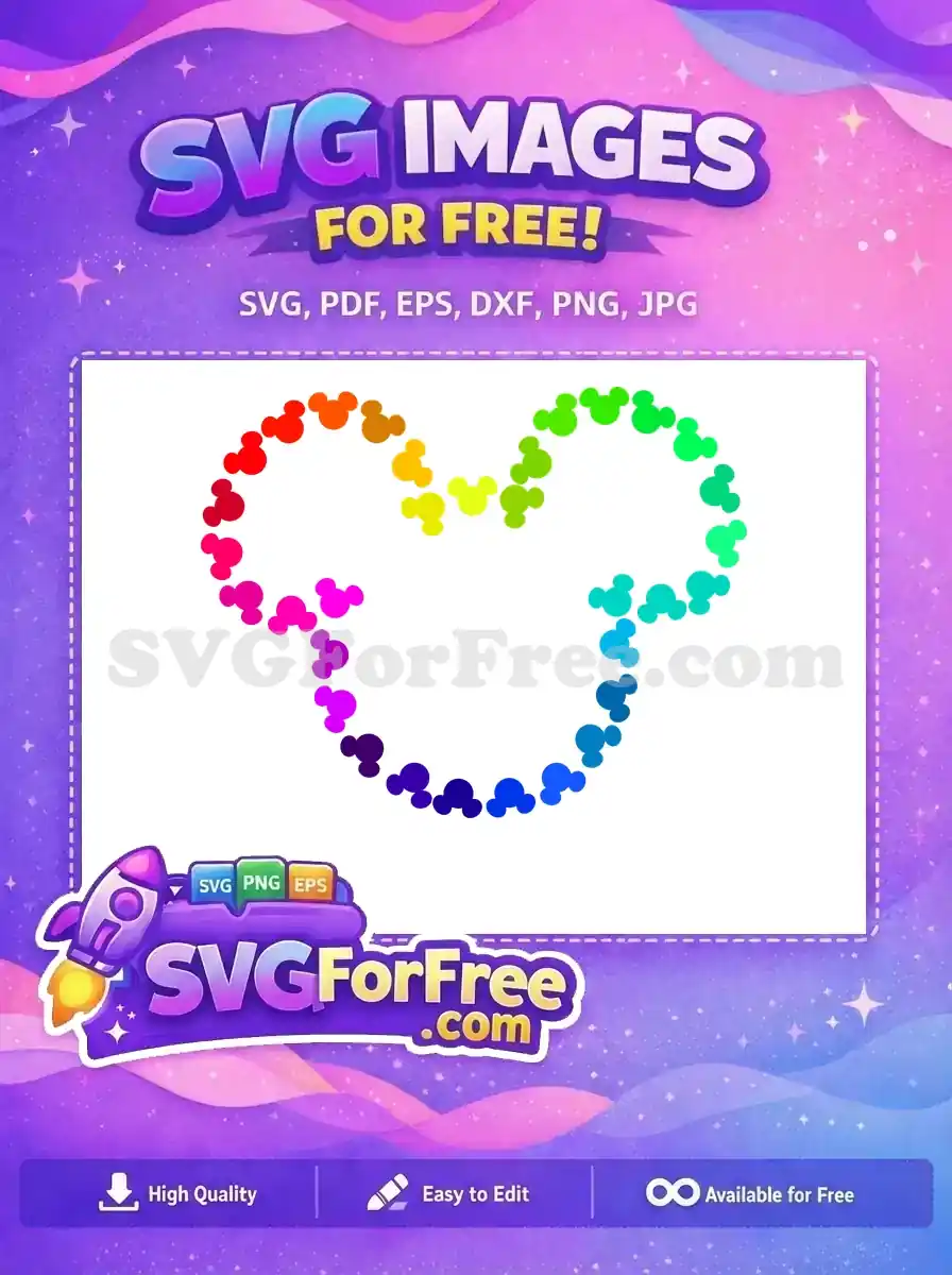 Free Rainbow Gradient Free Mickey Heads Pattern Celebration Free SVG – Instant Download