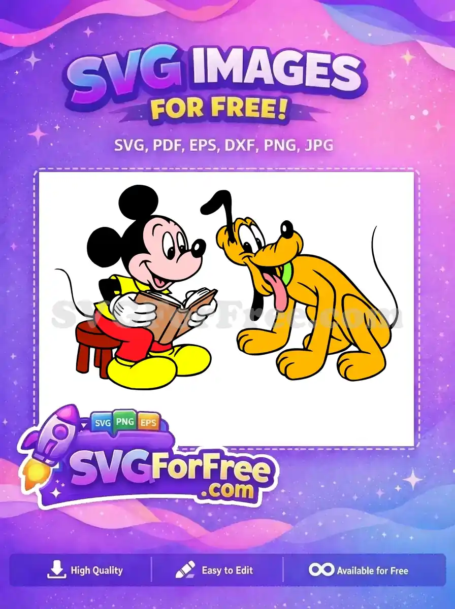 Free Reading Mickey Free Pluto Smiling Disney Cartoon Free SVG – Instant Download