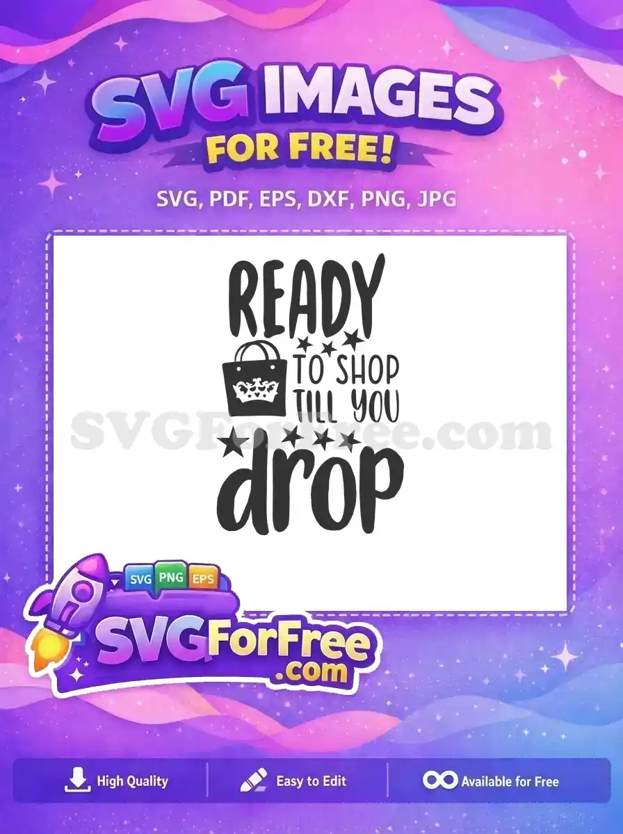 Bold ‘READY TO SHOP TILL YOU drop’ design with a purse icon, a free svg for shoppers.