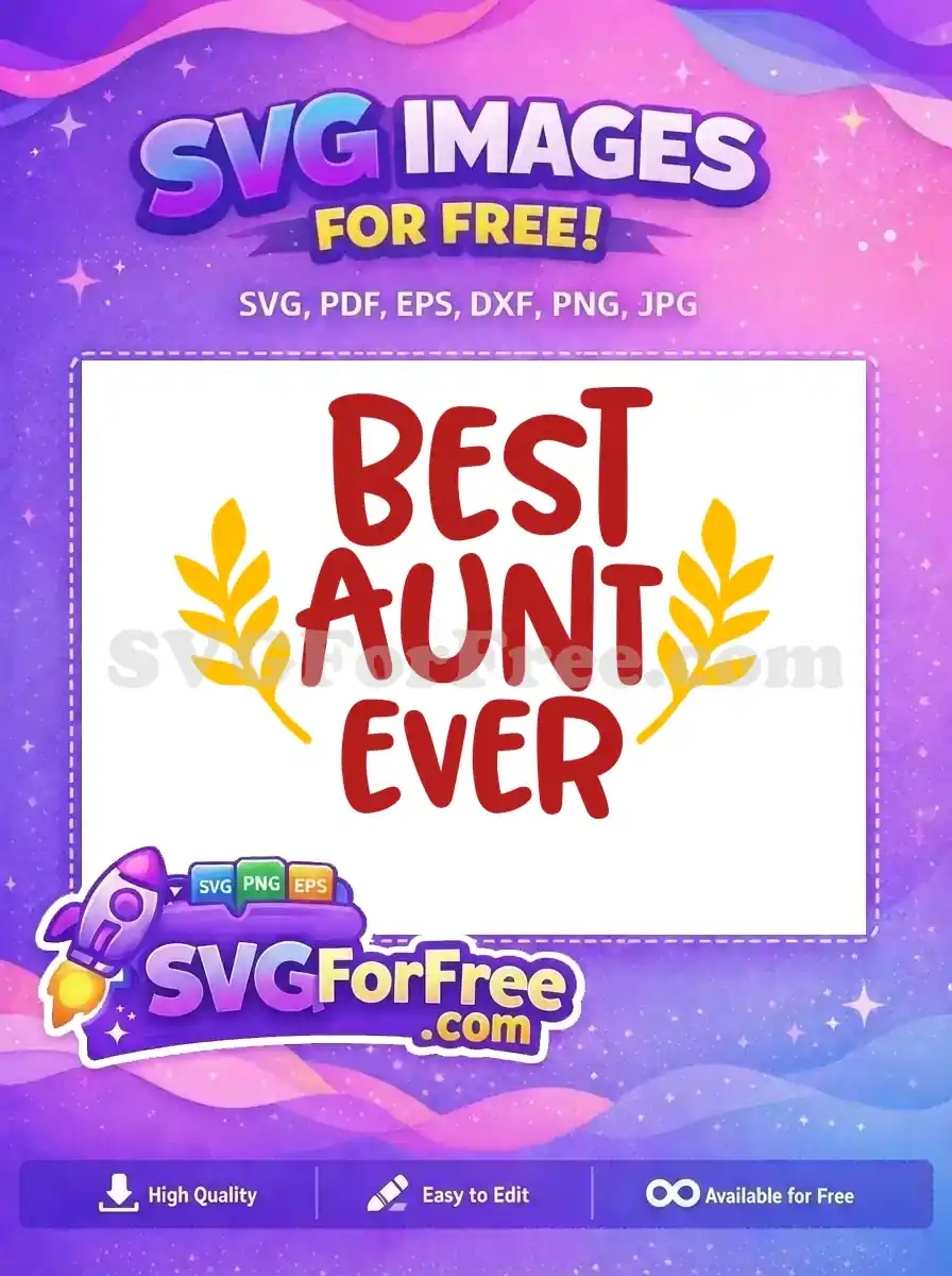 A free ‘Best Aunt Ever’ design, featuring bold text for ‘AUNT’ and elegant laurel branch accents.