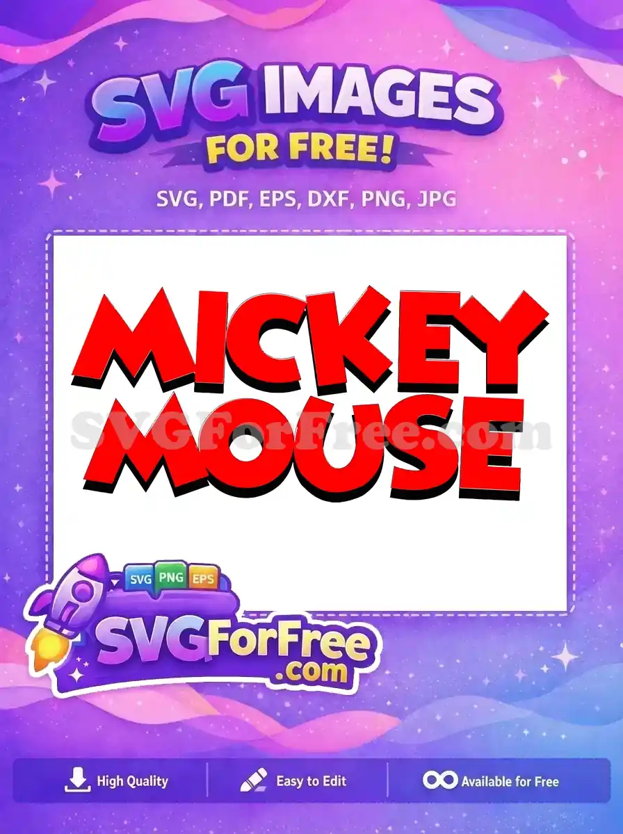 Red “MICKEY MOUSE” text stacked in two lines, a free design.