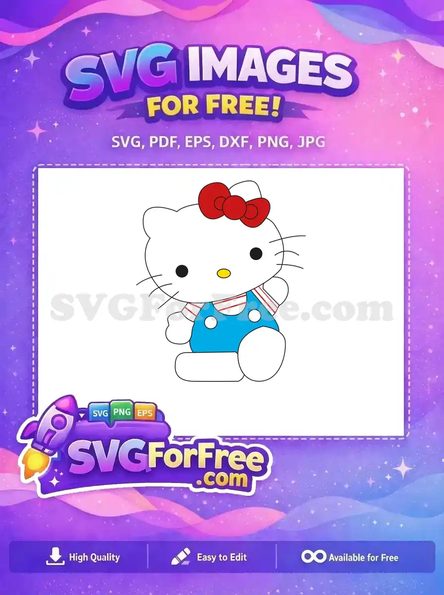 Free Red Bow Free Blue Overalls Hello Kitty Free SVG 1 – Instant Download