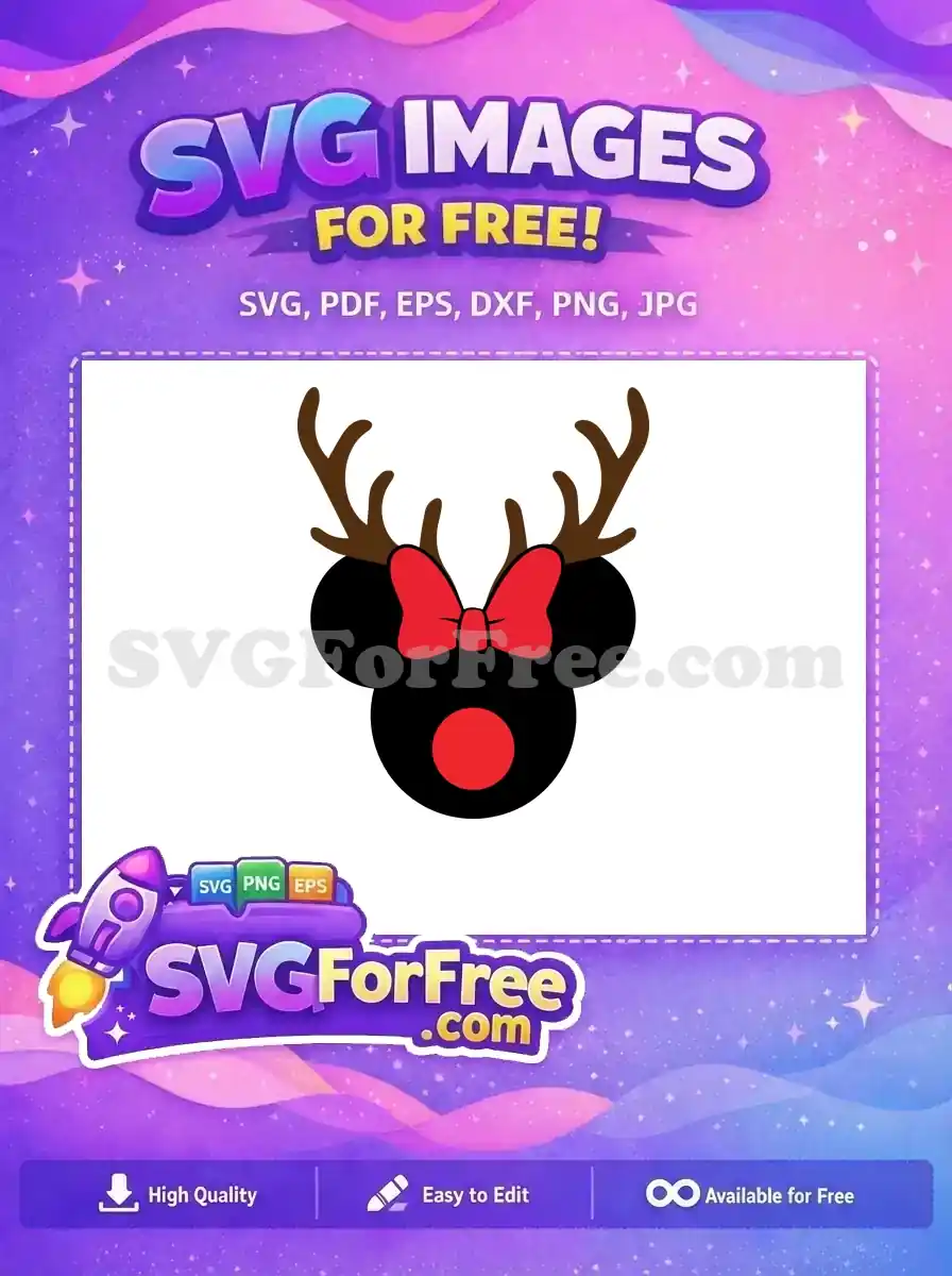 Free Red Bow Reindeer Free Black Mouse Christmas Free SVG – Instant Download