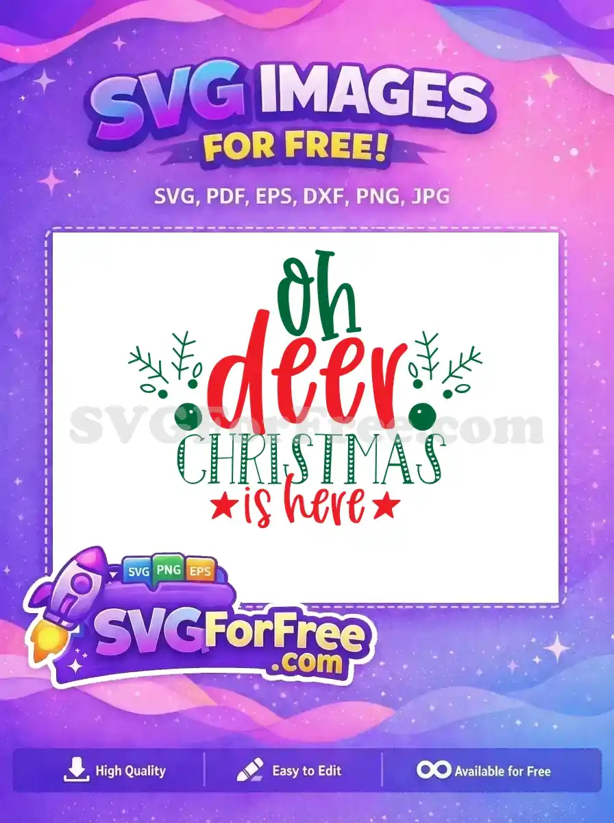 A delightful free Christmas SVG design, perfect for festive crafts and spreading holiday cheer. Get this charming “Oh deer Christmas is here” quote with festive accents, available for free download.