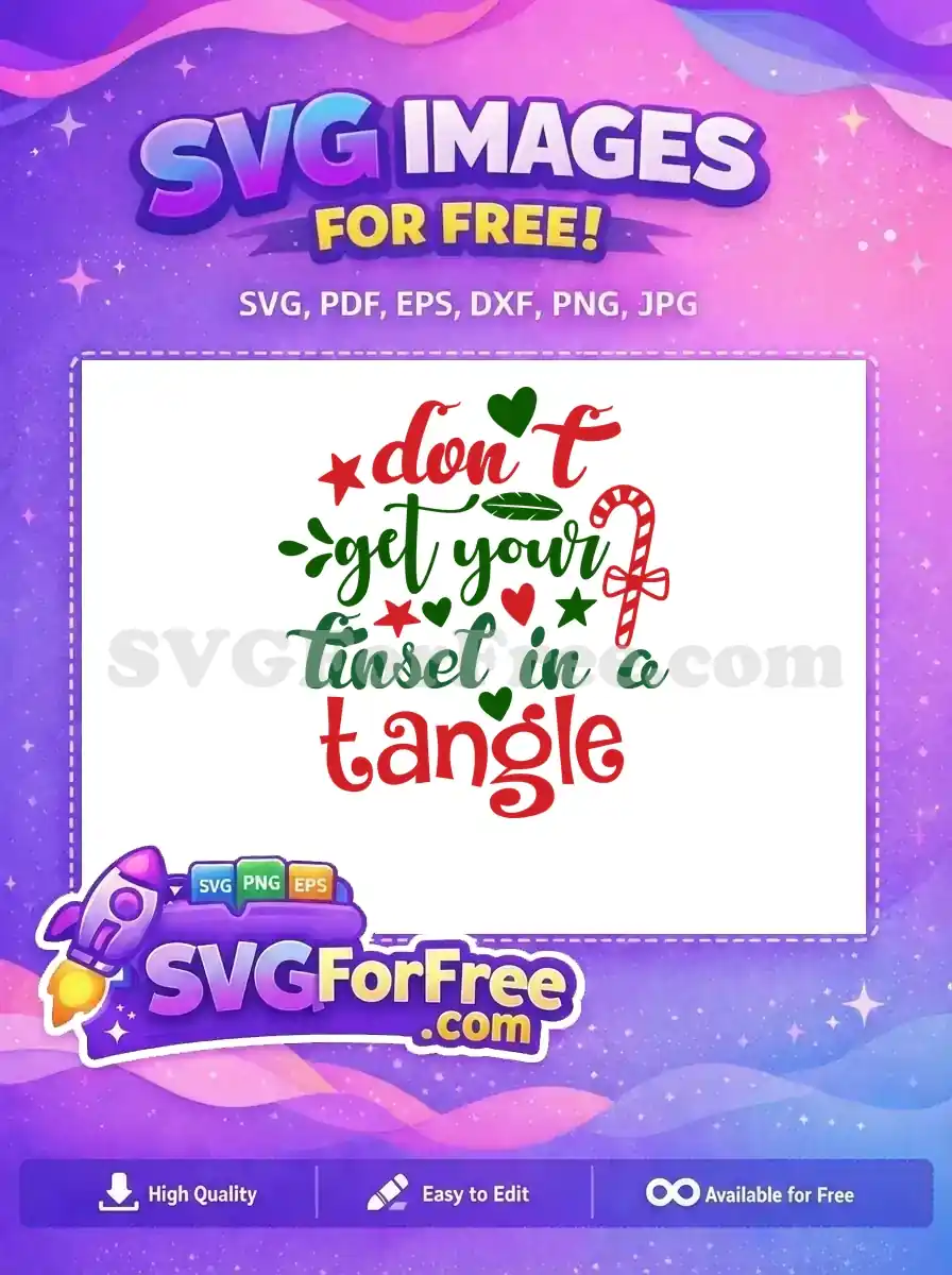 Free Red Green Stars Free Tinsel Tangled Christmas Quote Free SVG – Instant Download