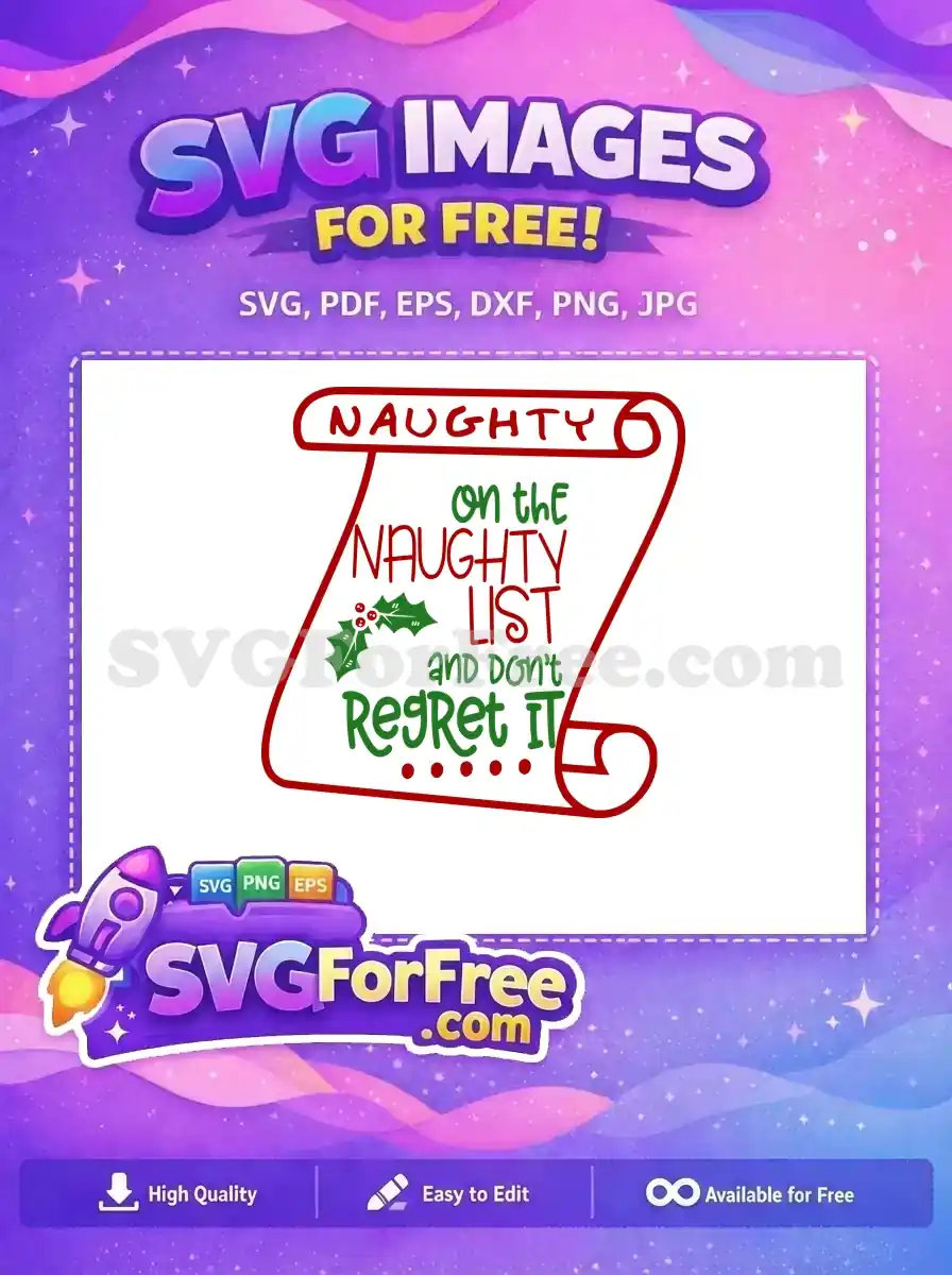 Free Red Naughty List Free Christmas Holly Naughty Free SVG – Instant Download