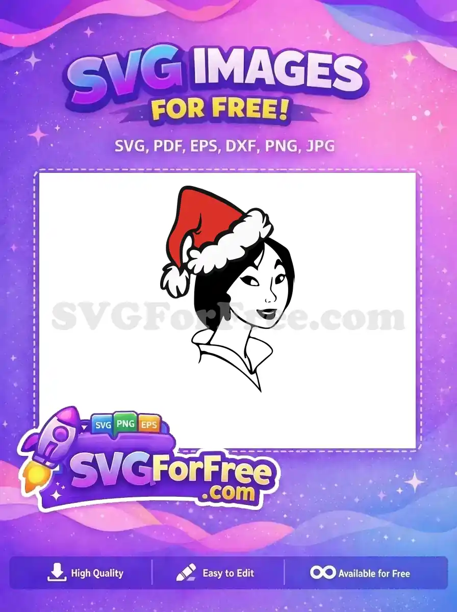 Mulan profile wearing a Santa hat, a serene free holiday princess vector.