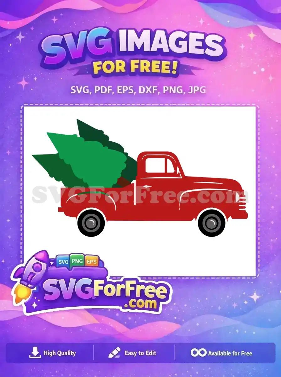 Free Red Vintage Truck Free Green Christmas Tree Christmas Free SVG – Instant Download