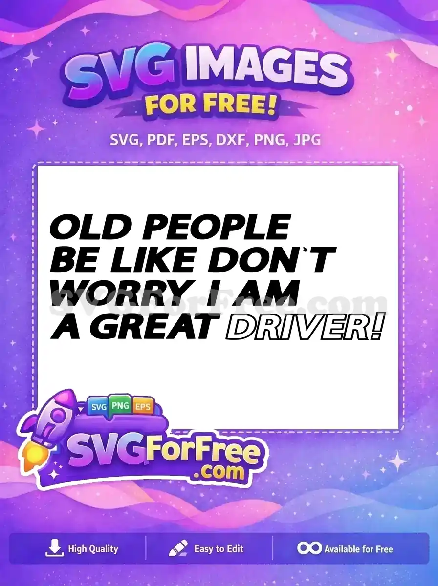 Humorous free SVG: ‘Old People Be Like Don’t Worry I Am A Great Driver’ in bold typography.