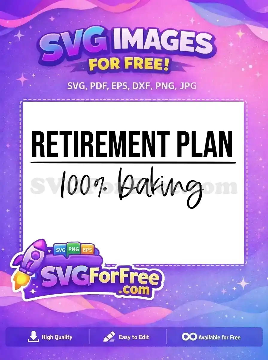 Hobby-themed free SVG ‘Retirement Plan 100% Baking’ with script details.