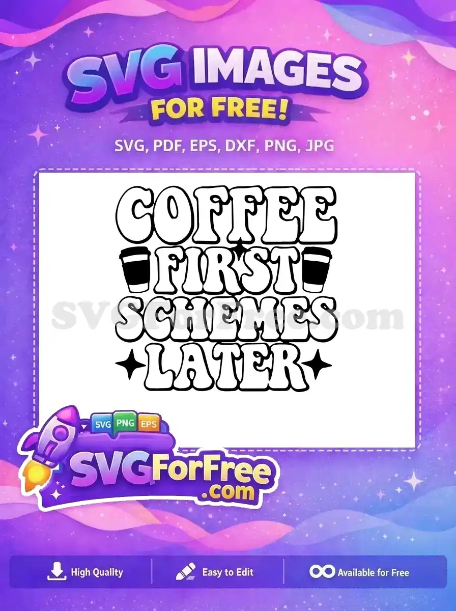 A ‘Coffee First Schemes Later’ quote in an outline font. A fun, free vector for strategic coffee drinkers.