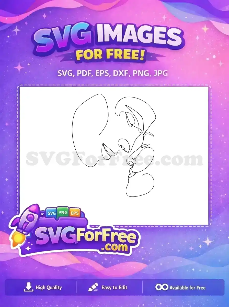 Free Romantic Kissing Couple Free Minimalist Line Art Love Romance Free SVG – Instant Download