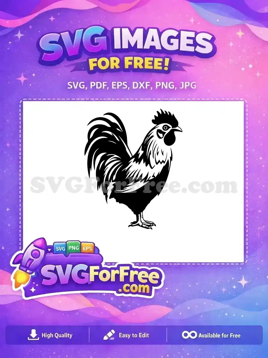 Discover this free, majestic rooster SVG design, perfect for farm-themed crafts and bold graphic projects. A truly free artistic asset for your creative needs!