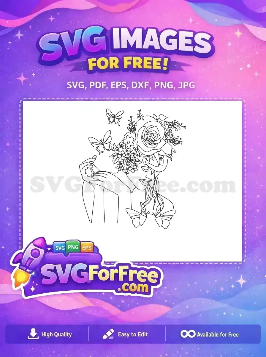 Free Rose Flowers Free Butterflies Line Art Women Free SVG – Instant Download
