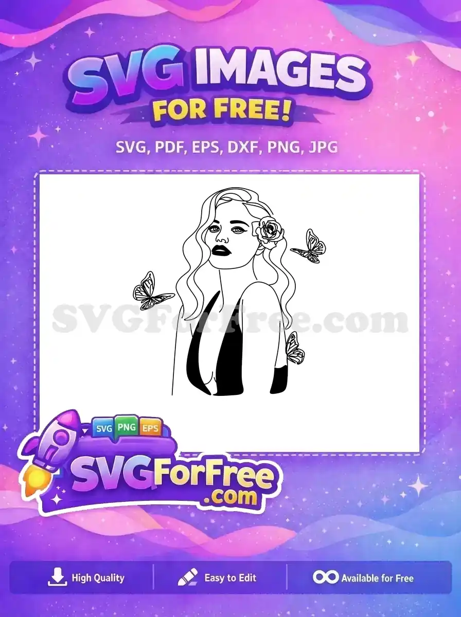 Free Rose Hair Free Butterfly Details Line Art Women Free SVG – Instant Download