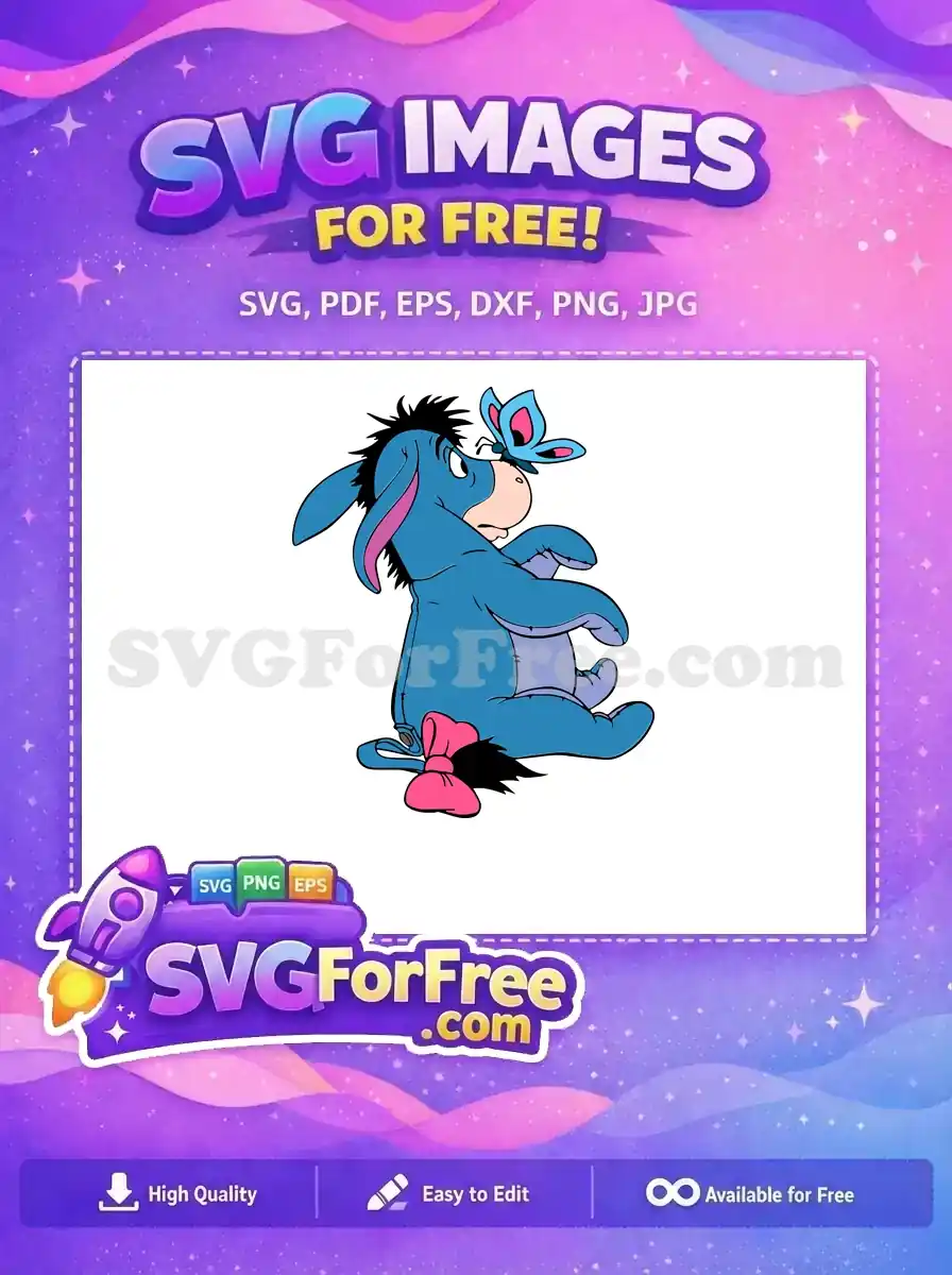 Free Sad Eeyore Butterfly Free Pink Bow Winnie The Pooh Free SVG – Instant Download