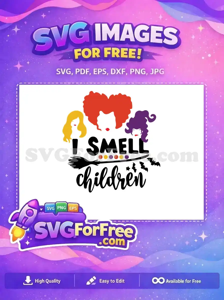 The iconic movie quote ‘I Smell Children’ featuring the Sanderson sisters’ hair. A spooky and free design.