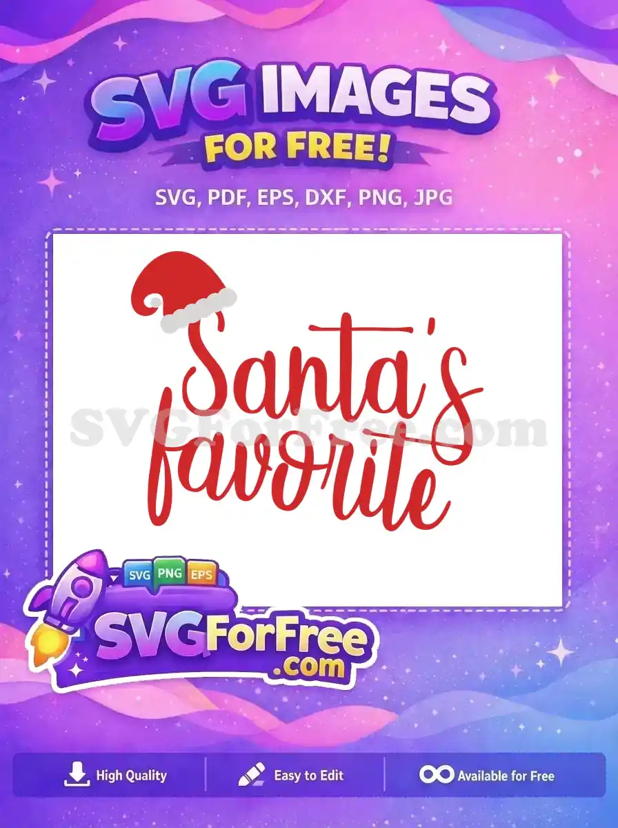 ‘Santa’s Favorite’ typography with a red Santa hat, a fun free holiday design.