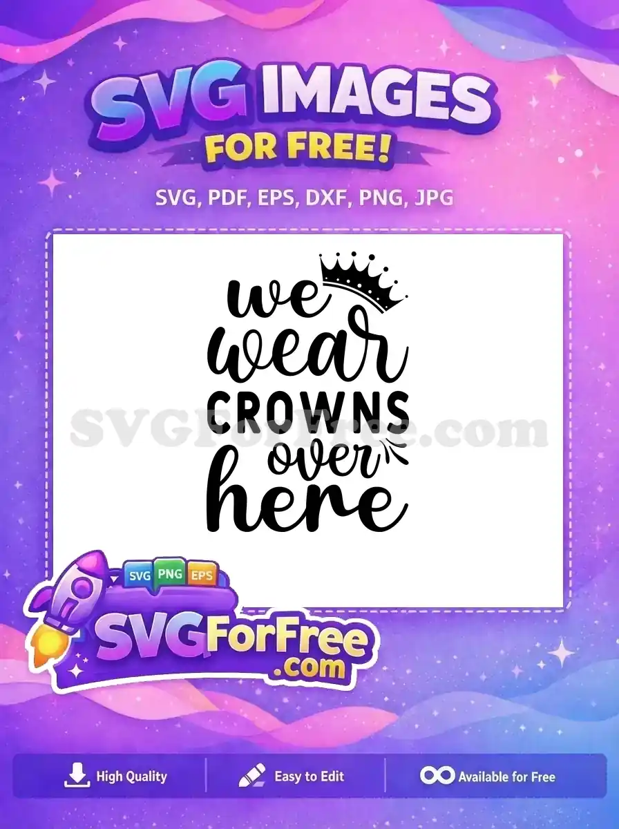 A regal and free design proclaiming ‘We wear crowns over here’, topped with a simple crown illustration.
