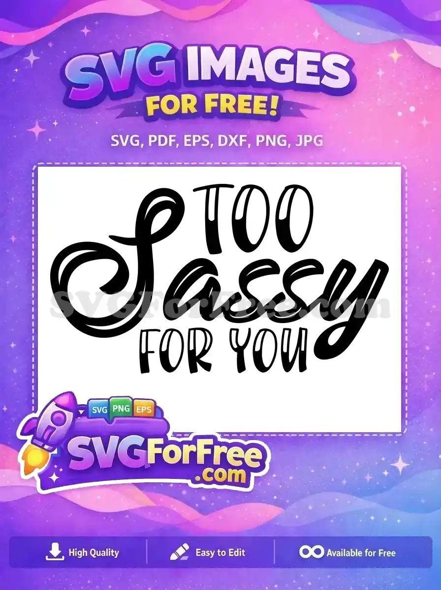Bold Too Sassy For You text with swirl accents, offered as a no-cost SVG vector.