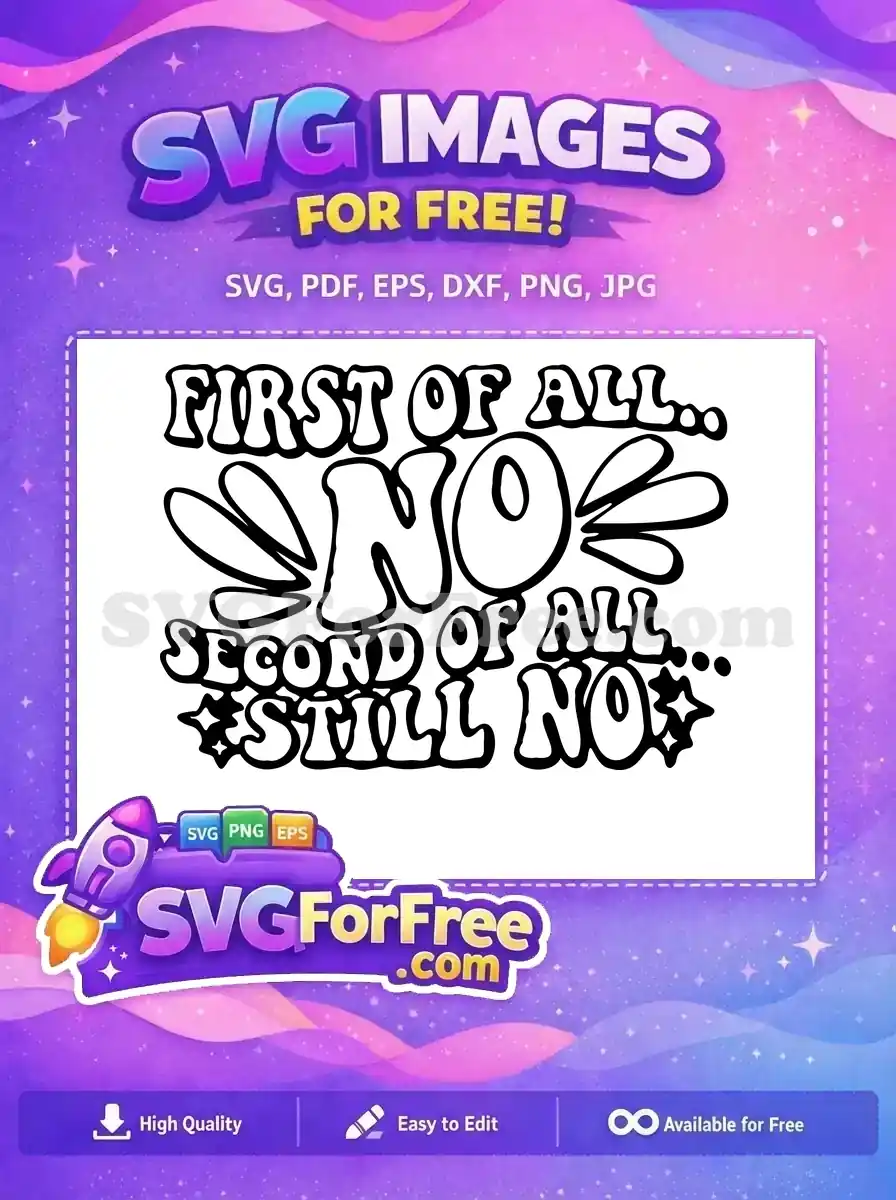 Bold sarcastic quote ‘FIRST OF ALL NO’ with hand-drawn floral doodles and bold lettering.