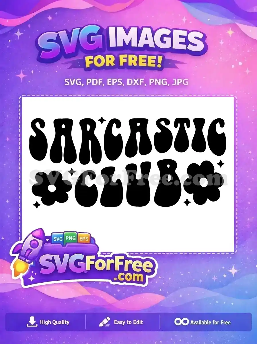 Retro ‘Sarcastic Club’ design with flower icons as a free SVG.