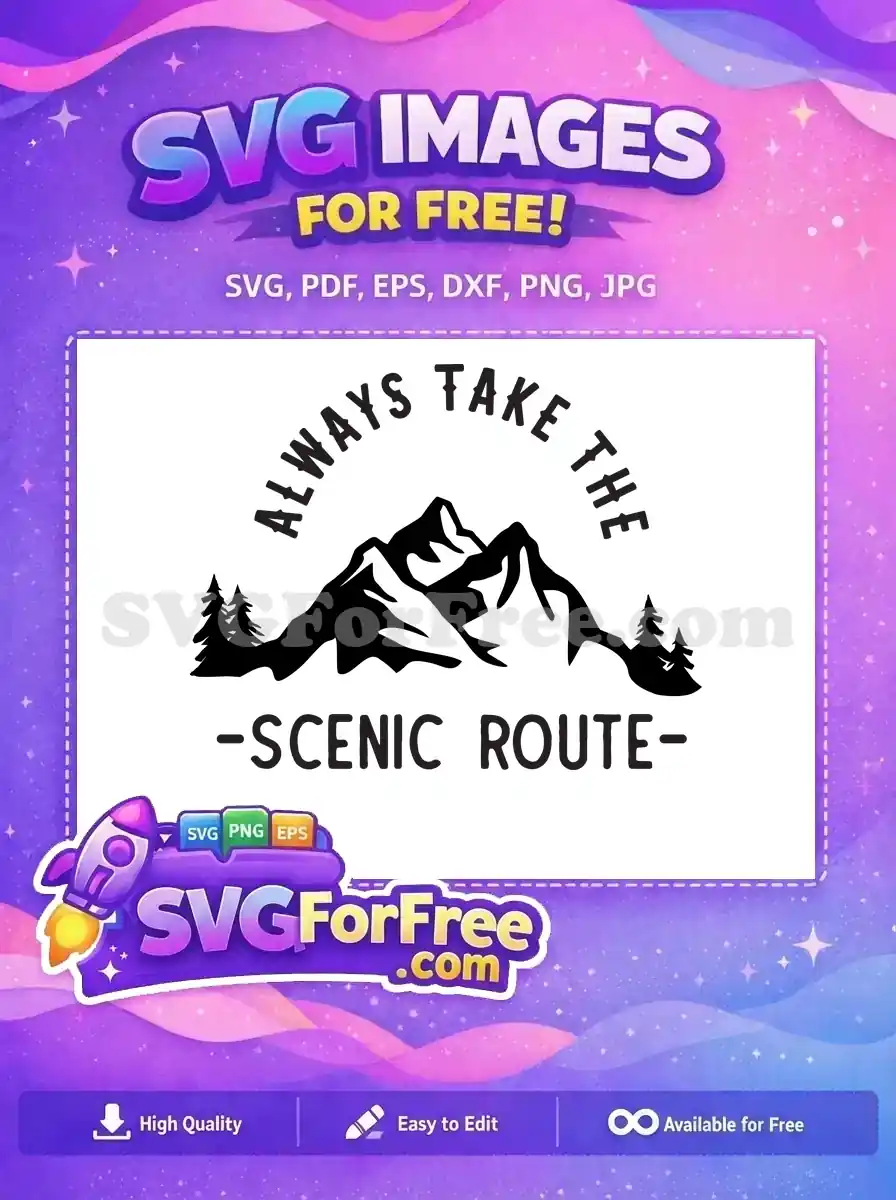 Free Scenic Route Mountains Free Pine Trees Camping Adventure Free SVG – Instant Download